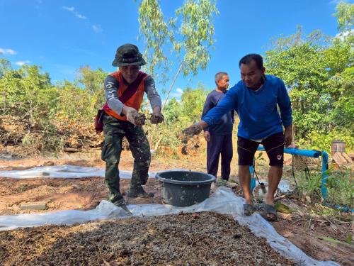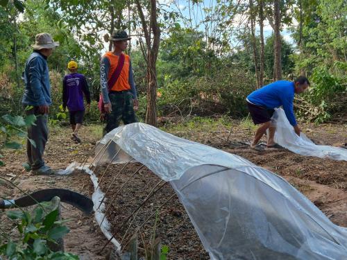 นางสาวกมลรัตน์ สุขสนิท พัฒนาการอำเภอชนบท และนางอัมพร สุดดี นักวิชาการพัฒนาชุมชนชำนาญการ จัดอบรมครัวเรือนที่ได้รับผลกระทบด้านอาชีพและรายได้ที่มีศักยภาพและสามารถพัฒนาได้ โดยการจัดอบรมส่งเสริมการเพาะเห็ดฝางกองเตี้ย เพื่อส่งเสริมให้ครัวเรือนเป้าหมาย มีศักยภาพและได้รับการพัฒนาทักษะด้านอาชีพและรายได้ สามารถนำความรู้ไปประกอบอาชีพ เพื่อสร้างรายได้ให้กับครัวเรือน ตามแนวทางการสร้างสัมมาชีพชุมชนอย่างยั่งยืน
