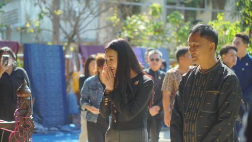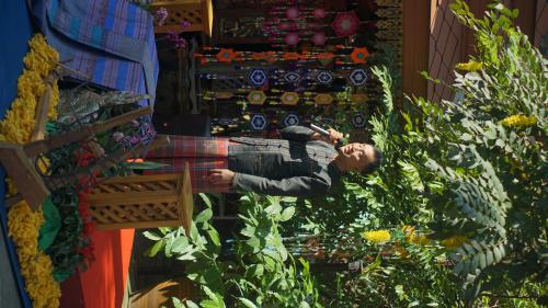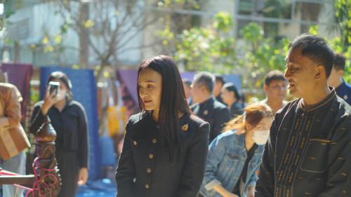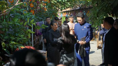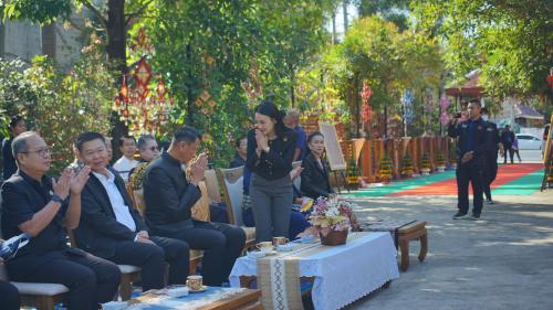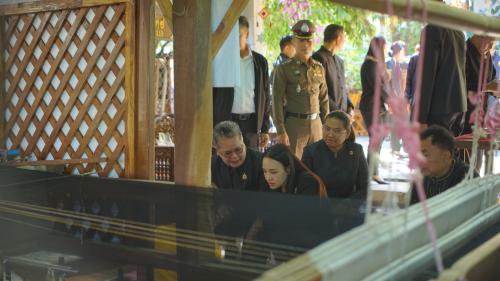 โอกาสนี้ รัฐมนตรีช่วยว่าการกระทรวงมหาดไทย ได้รับฟังรายงานจากนายอำเภอชนบท พร้อมให้โอวาทและข้อเสนอแนะแนวทางการขับเคลื่อนงานพัฒนาชุมชน โดยเน้นการอนุรักษ์และต่อยอดภูมิปัญญาผ้าไหมมัดหมี่ การพัฒนาผลิตภัณฑ์ชุมชนให้มีมูลค่าเพิ่ม เพื่อสร้างรายได้และความเข้มแข็งให้แก่ชุมชนอย่างยั่งยืน จากนั้นได้ร่วมยืนสงบนิ่งเพื่อถวายความอาลัยและน้อมรำลึกถึงพระมหากรุณาธิคุณ สมเด็จพระนางเจ้าสิริกิติ์ พระบรมราชินีนาถ พระบรมราชชนนีพันปีหลวง ก่อนเยี่ยมชมการดำเนินงานของพิพิธภัณฑ์ผ้าไหมมัดหมี่ ชินไหมไทย โดยมีคุณสุระมนตรี ศรีสมบูรณ์ ครูช่างศิลปหัตถกรรม สาขาลวดลายผ้า และศิลปิน OTOP ผู้ก่อตั้งพิพิธภัณฑ์ฯ ให้การแนะนำและถ่ายทอดองค์ความรู้ด้านการทอผ้าไหม เยี่ยมชมกิจกรรมผลิตผ้าไหม ตั้งแต่เลี้ยงไหม การสาวไหม การกวักไหม มัดหมี่ ย้อมหมี่ ย้อมและทอ จากนั้นพาเยี่ยมชม อาคารทั้ง 3 หลัง ได้แก่1.อาคาร สืบสาน 2.อาคารมูลมัง 3.อาคารศิลป์อีสาน