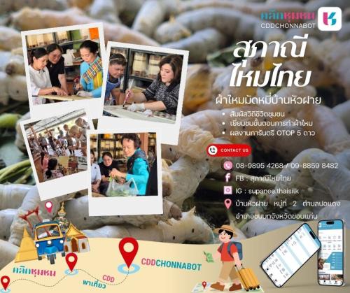 สุภาณีไหมไทย บ้านหัวฝาย หมู่ที่ 2 อำเภอชนบท จังหวัดขอนแก่น สัมผัสวิถีชีวิตชุมชน เยี่ยมชมกระบวนการทอผ้าตั้งแต่ต้นน้ำถึงปลายน้ำ เลือก Shop ชม สินค้า OTOP ผ้าไหมมัดหมี่ ผ้าไหมแต้มหมี่ลายเอกลักษณ์ การันตรี OTOP ระดับ 5 ดาว ของชุมชนบ้านหัวฝาย