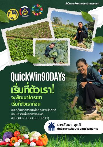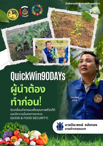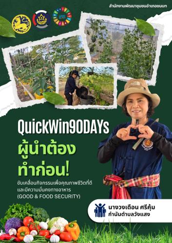 จากสถานการณ์ความขัดแย้งในตะวันออกกลางที่ส่งผลกระทบทางเศรษฐกิจทั่วโลก เพื่อเป็นการเตรียมความพร้อมและรองรับกับวิกฤตที่อาจเกิดขึ้นในอนาคต กรมการพัฒนาชุมชนจึงได้น้อมนำหลักปรัชญาเศรษฐกิจพอเพียงสู่การปฏิบัติระดับครัวเรือนพร้อมทั้งน้อมนำแนวพระราชดำริของสมเด็จพระขนิษฐาธิราชเจ้า กรมสมเด็จพระเทพรัตนราชสุดา ฯ สยามบรมราชกุมารี โครงการ "บ้านนี้มีรักปลูกผักกินเอง" มาต่อยอดและขยายผลสู่ปฏิบัติการ Quick Win 90 วัน! ปลูกผักสวนครัวสร้างความมั่นคงทางอาหาร สู้ภัยวิกฤตด้วยวิถีพอเพียง ผ่านกิจกรรม "ผู้นำต้องทำก่อน / เริ่มที่ตัวเรา"